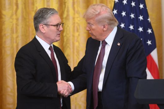 도널드 트럼프(오른쪽) 미국 대통령과 키어 스타머 영국 총리가 지난 2월 27일 워싱턴DC 백악관에서 악수를 나누고 있다. (사진=AFP) |