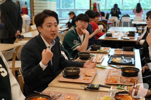 (서울=뉴스1) = 이준석 개혁신당 대통령 후보가 9일 서울 종로구 성균관대학교를 찾아 학생들과 학식을 먹으며 대화하고 있다. (이준석 캠프 제공, 재판매 및 DB 금지) 2025.5.9/뉴스1