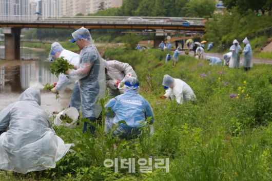 [이데일리 노진환 기자] 동아오츠카가 9일 임직원들과 함께 안양천 일대에서 생태계교란 식물 제거 활동을 실시했다. 이번 활동은 가시박,환삼덩굴, 단풍잎돼지풀 등 개화 전 생태계교란 식물을 뿌리째 제거함으로써 생물다양성 보존과 서식지 보호에 기여하고자 진행됐다. 생태계교란 식물은 토종생물과의 경쟁에서 우위를 점하여 생태계 지속가능성 저하, 서식지 교란, 생물다양성 감소 등의 피해를 유발한다. 동아오츠카는 앞으로도 지역사회와 함께하는 ESG 활동을 통해 지속가능한 생태 환경 조성에 앞장설 계획이다. (사진=동아오츠카)