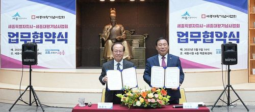 (세종=연합뉴스) 양영석 기자 = 세종시와 세종대왕기념사업회가 9일 세종대왕 업적을 알리고 한글문화 진흥을 위해 손을 맞잡았다.
