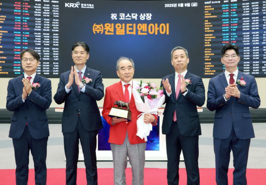 9일 서울 영등포구 한국거래소에서 열린 원일티엔아이 코스닥시장 상장기념식에서 관계자들이 상장기념패 전달 후 기념 촬영하고 있다. 김대영(왼쪽부터) 한국IR협의회 부회장, 민경욱 한국거래소 코스닥시장본부장, 이정빈 원일티엔아이 대표이사, 윤병운 NH투자증권 대표이사, 김준만 코스닥협회 전무. [한국거래소 제공] |