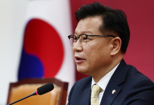 이양수 국민의힘 사무총장이 9일 국회에서 김문수 대선 후보와 한덕수 전 국무총리의 단일화 관련 기자회견을 하고 있다. 뉴스1 |
