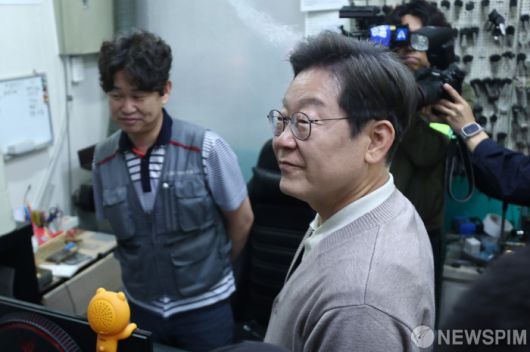 [칠곡=뉴스핌] 최지환 기자 = '골목골목 경청투어'에 나선 이재명 더불어민주당 대선후보가 9일 오후 경북 칠곡군 석적읍 한 도장가게를 찾아 상인과 대화를 나누고 있다. 2025.05.09 choipix16@newspim.com |