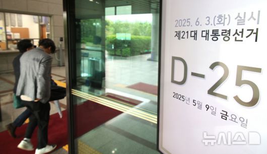 [과천=뉴시스] 김금보 기자 = 제21대 대통령선거를 25일 앞둔 9일 오전 경기 과천시 중앙선거관리위원회 출입구에 선거일이 표시돼 있다. 2025.05.09. kgb@newsis.com |
