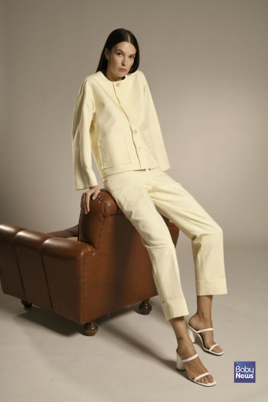 특히 이번 컬렉션의 버진 울 크루넥 니트 탑과 플레어 스커트는 미니멀한 실루엣과 은은한 파스텔 컬러가 조화를 이루며, 페미닌한 터치를 가미한 디자인으로 함께 스타일링하면 한층 더 여성스러운 분위기를 연출할 수 있다. 또한, 경쾌한 매력의 크롭 블레이저와 카프리 팬츠는 어떤 스타일에도 우아함과 스타일리시한 무드를 더해준다.