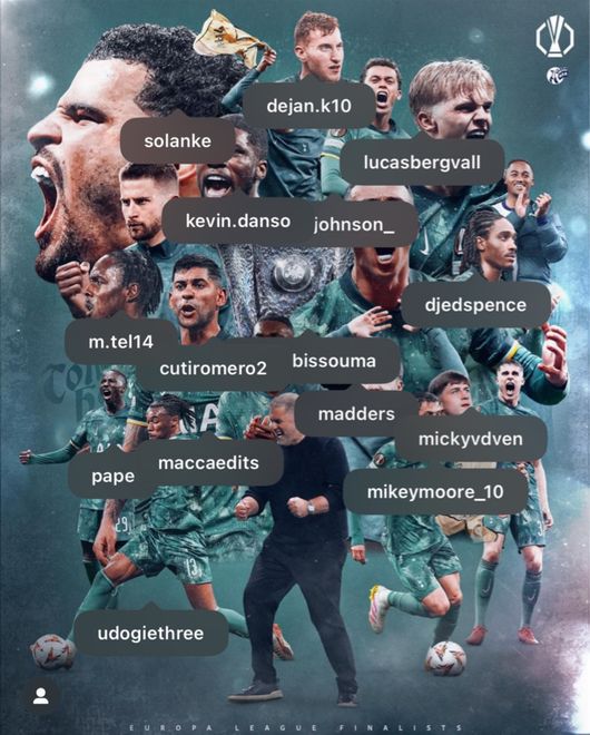 더 큰 아쉬움을 남긴 건, 이 포스터가 단순한 이미지가 아니었다는 점이다. 해당 커뮤니티는 이 이미지를 제작하며 등장한 선수들의 개인 소셜 미디어 계정까지 일일이 태그했다. 그러나 이 명단에서도 손흥민은 누락됐다. 매디슨과 베리발은 이 태그 명단에도 포함됐기에, 서운함은 더 커졌다.