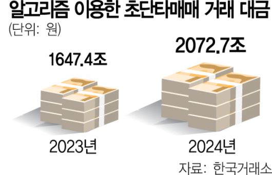 문제는 인공지능(AI) 기술 발전 등으로 HFT 매매가 급격히 늘어나고 있다는 점이다. HFT 거래 대금 규모는 한국거래소가 규제 도입 이후 집계를 시작한 첫해 2023년 1647조 4390억 원에서 지난해 2072조 7047억 원으로 25.81% 급증했다. ATS가 도입되면서 거래소 간 거래 시간, 호가 방식 등 매매 체결 속도 차이를 이용한 HFT가 더욱 활발해질 가능성도 제기되고 있다.