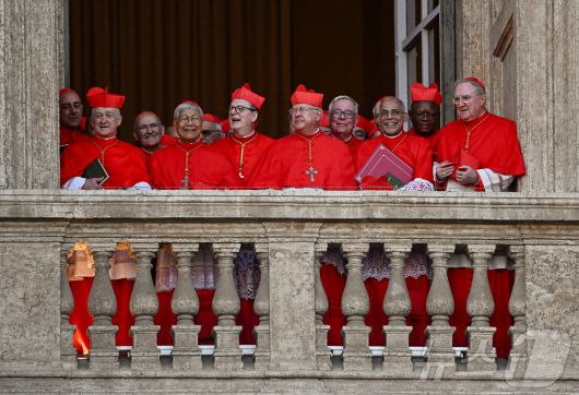 신임 교황 레오14세 선출에 기뻐하는 추기경들. 앞줄 왼쪽에서 두 번째 한국의 유흥식 추기경의 모습도 보인다. 2025.05.08. ⓒ 로이터=뉴스1 ⓒ News1 이지예 객원기자 |
