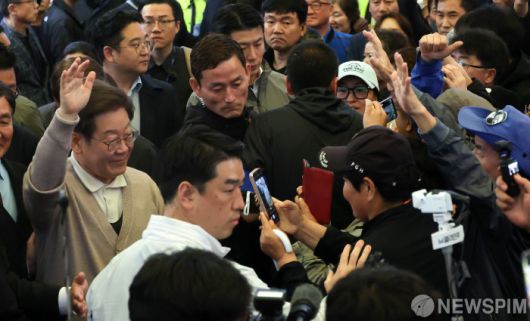 [성주=뉴스핌] 최지환 기자 = '골목골목 경청투어'에 나선 이재명 더불어민주당 대선후보가 9일 오후 경북 성주군 성주전통시장에서 시민들과 인사하고 있다. 2025.05.09 choipix16@newspim.com |