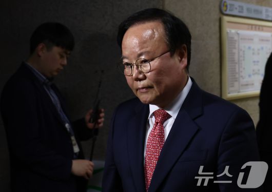 (서울=뉴스1) 김민지 기자 = 김문수 국민의힘 대통령 후보 대리인인 김재원 비서실장이 9일 서울 여의도 국회에서 열린 단일화 협상 관련 회동에 참석하고 있다. 2025.5.9/뉴스1