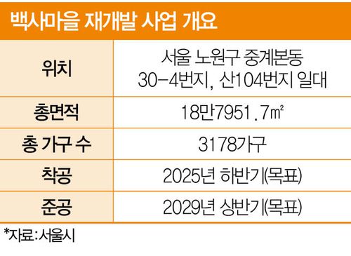 서울시는 이러한 내용의 ‘중계본동(백사마을) 주택 재개발 정비사업(변경)’ 사업시행계획을 위한 각종 심의안을 통합심의해 각각 통과시켰다. 이에 따라 백사마을에는 지하 4층~지상 최고 35층, 총 3178가구 규모의 아파트가 지어진다. 가구 수가 지난해 당초 계획(2437가구)보다 741가구 늘어났다.