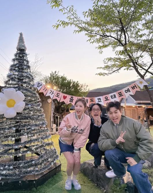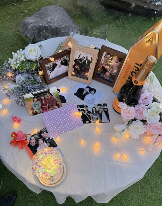 이들은 야외 정원에서 테이블을 꾸미고 꽃과 사진, 샴페인 등으로 아기자기하게 장식된 공간에서 즐거운 시간을 보내고 있다. 특히 테이블 위에는 세 사람의 추억이 담긴 사진과 함께 “장가가도 출산해도 코요태포에버”라는 문구가 적힌 가랜드가 걸려 있어 눈길을 끈다.