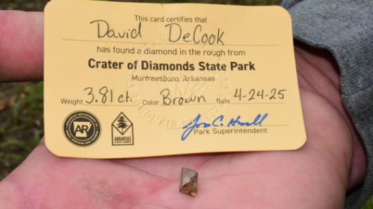미국의 한 아마추어 암석 수집가가 가족과 산책하던 중 3.81캐럿의 다이아몬드를 발견해 화제다. 발견 장소는 세계에서 유일하게 일반인이 다이아몬드를 채굴하고 소유할 수 있는 주립공원이었다.