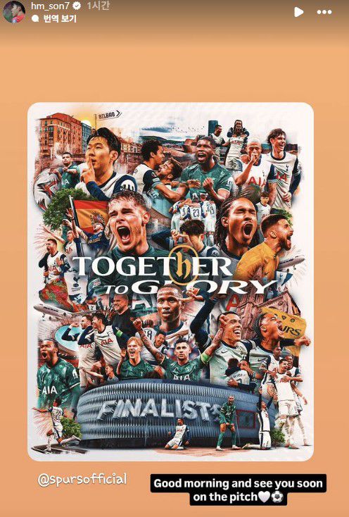 손흥민은 자신의 사회관계망서비스(SNS)를 통해 토트넘의 유로파리그 결승 소식을 전했다. 그리고는 "좋은 아침입니다. 그리고 곧 경기장에서 뵙겠습니다.(Good morning and see you soon on the pitch)"라고 짧은 글을 남겼다. 선수 본인이 직접 곧 경기에 나서는 모습을 보여주겠다고 예고했다.