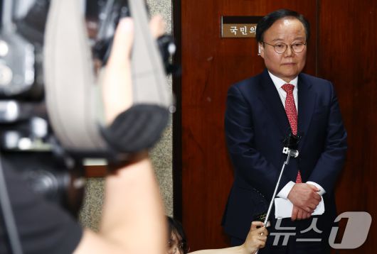 (서울=뉴스1) 김민지 기자 = 김문수 국민의힘 대통령 후보 대리인인 김재원 비서실장이 9일 서울 여의도 국회에서 열린 한덕수 무소속 대선 예비후보와의 단일화 협상 관련 회동을 마치고 브리핑을 하고 있다. 2025.5.9/뉴스1kimkim@news1.krCopyright ⓒ 뉴스1. All rights reserved. 무단 전재 및 재배포, AI학습 이용 금지.