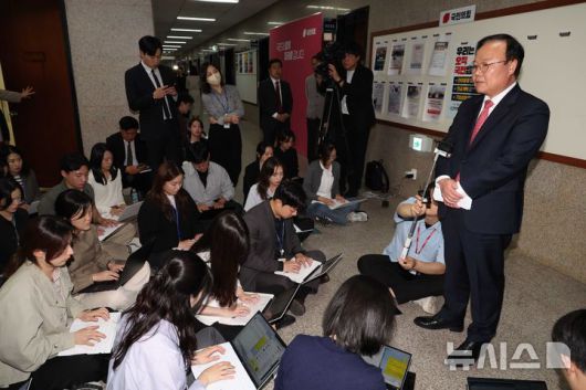 [서울=뉴시스] 조성봉 기자 = 김문수 국민의힘 대선후보 측 김재원 비서실장이 9일 오후 서울 여의도 국회에서 '김문수-한덕수 대선후보 측 단일화 협상'을 마치고 취재진의 질문에 답변하고 있다. 2025.05.09. suncho21@newsis.com |