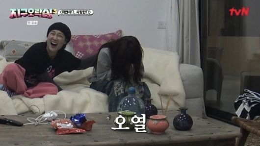 가수 안유진과 이영지가 드라마 ‘미안하다 사랑한다’에 푹 빠졌다. 사진 제공 = tvN ‘뿅뿅 지구오락실3’ |