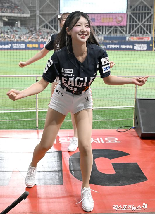 (엑스포츠뉴스 고척, 김한준 기자) 9일 오후 서울 구로구 고척스카이돔에서 열린 '2025 신한 SOL Bank KBO리그' 한화 이글스와 키움 히어로즈의 경기, 한화가 문현빈의 결승 솔로포에 힘입어 키움에 7:5로 승리하며 26년 만에 10연승을 기록했다. 한화 우수한 치어리더가 멋진 공연을 선보이고 있다.김한준 기자 kowel@xportsnews.com