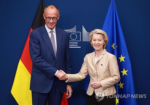 (브뤼셀=연합뉴스) 정빛나 특파원 = 프리드리히 메르츠 독일 신임 총리가 9일(현지시간) 유럽연합(EU)과 미국 간 '상호 무관세' 합의가 이뤄지길 희망한다고 밝혔다.