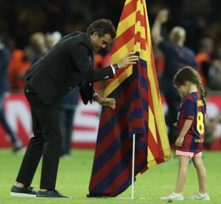 지금도 화제 되는 사진이 있다. 지난 2014-2015 UEFA 챔피언스리그 유벤투스와 결승전 직후 찍힌 사진이다. 당시 엔리케는 바르셀로나의 감독이었다. 리오넬 메시, 루이스 수아레스, 네이마르 등 축구 역사에 남을 공격진으로 우승을 노렸다.