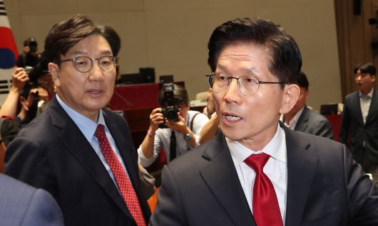 김 후보는 의총이 비공개로 전환되자 곧바로 퇴장했다. 김 후보 퇴장에 일부 의원들 사이에서는 “기다리고 얘기 좀 하고 가라”, “자기 혼자 떠들 거면 뭐 하러 왔느냐”는 등 항의가 쏟아졌다.