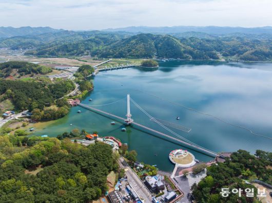 국내 최대의 저수지인 충남 예산의 예당호의 출렁다리. 예산과 당진의 농경지에 물을 대는 저수지라고 해 ‘예당’이라는 이름이 붙었다. |