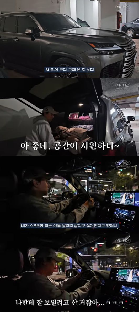 공개된 영상에서 민혜연은 주진모가 고른 새 차를 공개했다. L사의 럭셔리 대형 SUV를 택한 주진모는 "큰 차로 샀다. 승차감도 예술"이라고 만족해했다.