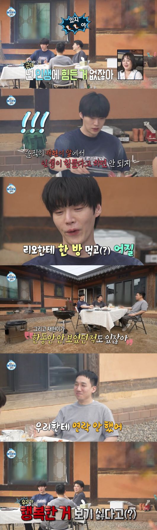 이후 가져온 고기를 구워서 식사를 즐기던 중 안재현은 "넌 인생에 힘든 건 없잖아"라고 말했고, 이를 들은 친구는 "있지 XX야"라고 찐친 반응을 보였다.