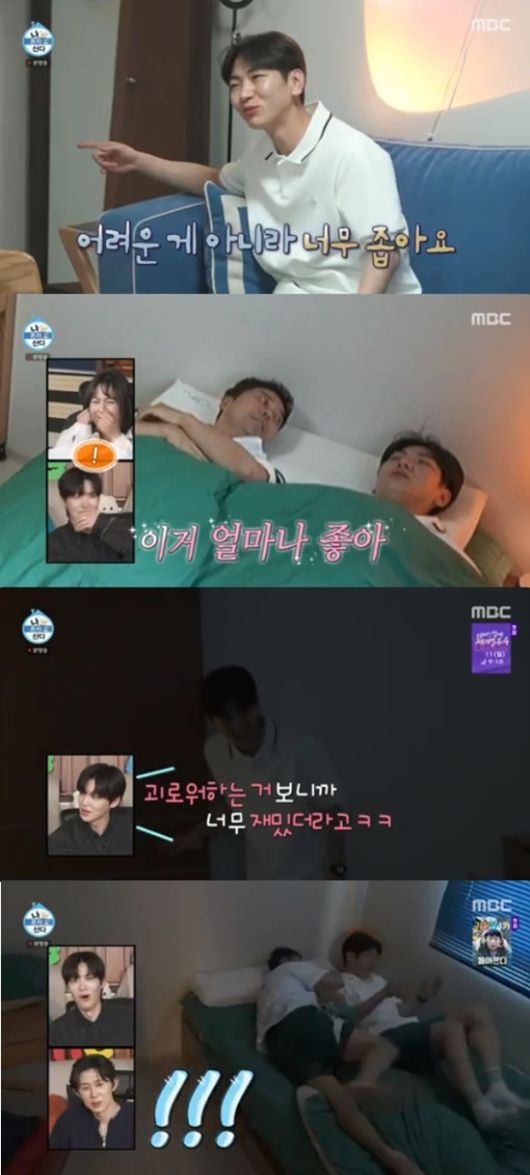 전현무는 한 번 같이 침대에 누워보자고 제안하더니 이주승과 나란히 눕고는 "얼마나 좋아. 이렇게 해야 친해지는 거야"라고 만족스러워했다.
