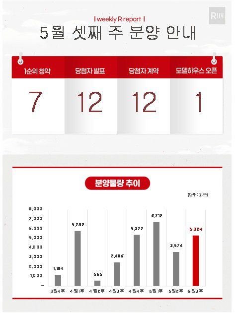 (서울=연합뉴스) 오예진 기자 = 5월 셋째 주에는 전국 7개 단지에서 5천304가구가 공급된다.