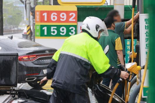 지난달 서울 시내 한 셀프주유소에서 오토바이 운전자가 주유를 하고 있다. [사진=연합뉴스] |