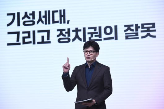 한 전 대표는 또 한 후보를 향해 “그분은 바람을 일으키고 있지도 압도적인 지지를 받고 있지도 않고, 계엄발표를 옆에서 지켜보며 막지 못한 총리일 뿐”이라고 비판했다.