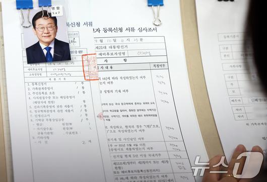 (과천뉴스1) 김명섭 기자 = 10일 오전 경기도 과천시 중앙선거관리위원회에서 직원이 이재명 더불어민주당 대통령 후보자 등록 서류를 검토하고 있다. 2025.5.10/뉴스1msiron@news1.krCopyright ⓒ 뉴스1. All rights reserved. 무단 전재 및 재배포, AI학습 이용 금지.