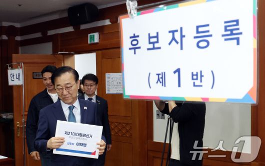 (과천=뉴스1) 김명섭 기자 = 김윤덕 더불어민주당 중앙선거대책위원회 총무본부장과 배우 이관훈씨가 10일 오전 경기도 과천시 중앙선거관리위원회에서 이재명 더불어민주당 대통령 후보자 등록을 하고 있다. 2025.5.10/뉴스1msiron@news1.krCopyright ⓒ 뉴스1. All rights reserved. 무단 전재 및 재배포, AI학습 이용 금지.