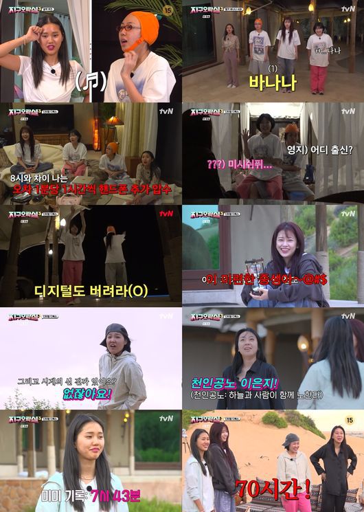 지난 9일 방송된 tvN ‘뿅뿅 지구오락실3(연출 나영석, 박현용)’ 3회에서는 이은지, 미미, 이영지, 안유진이 디지털 디톡스도 막지 못하는 유쾌한 에너지와 휴대전화, 노트북 없이 시간을 맞히기 위해 샤머니즘부터 모래시계까지 동원하는 각양각색 활약으로 즐거움을 선사했다.
