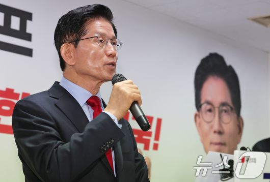 (서울=뉴스1) 장수영 기자 = 국민의힘으로부터 대통령선거 후보 자격이 취소된 김문수 후보가 10일 오전 서울 여의도에 마련된 대선 캠프 사무실에서 긴급기자회견을 하고 있다. 2025.5.10/뉴스1