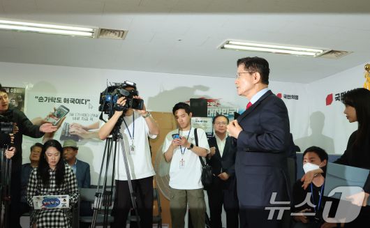 (서울=뉴스1) 장수영 기자 = 국민의힘으로부터 대통령선거 후보 자격이 취소된 김문수 후보가 10일 오전 서울 여의도에 마련된 대선 캠프 사무실에서 긴급기자회견을 마친 뒤 이동하고 있다. 2025.5.10/뉴스1presy@news1.krCopyright ⓒ 뉴스1. All rights reserved. 무단 전재 및 재배포, AI학습 이용 금지.