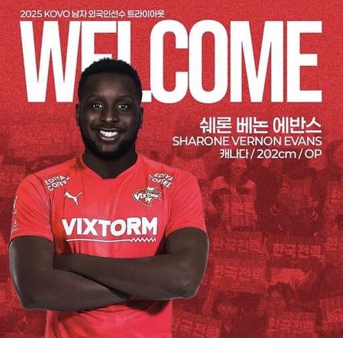 키 202㎝의 아포짓 스파이커인 에번스는 캐나다 국가대표로 2020 도쿄 올림픽과 2021 국제배구연맹(FIVB) 발리볼네이션스리그(VNL)에서 활약한 공격수다.