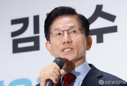 [서울=뉴스핌] 윤창빈 기자 = 김문수 국민의힘 대선 후보가 10일 오전 서울 여의도 선거사무소에서 긴급 기자회견을 열고 대통령 후보 자격 박탈에 관한 입장을 밝히고 있다. 2025.05.10 pangbin@newspim.com