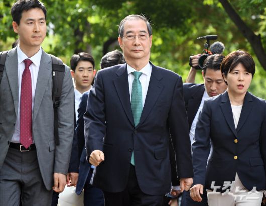 지난 8일 한덕수 무소속 대선 예비후보가 김문수 국민의힘 대선 후보와의 단일화를 위한 2차 회동을 하기 위해 국회 사랑재로 향하고 있다. 황진환 기자 |
