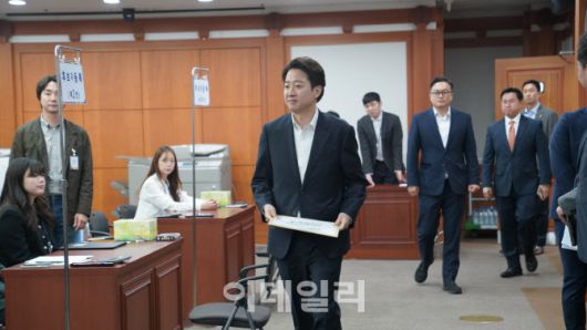 이준석 제21대 대통령 선거 개혁신당 후보가 10일 오전 경기도 과천시 중앙선거관리위원회에서 후보자 등록을 하고 있다.(사진=개혁신당) |