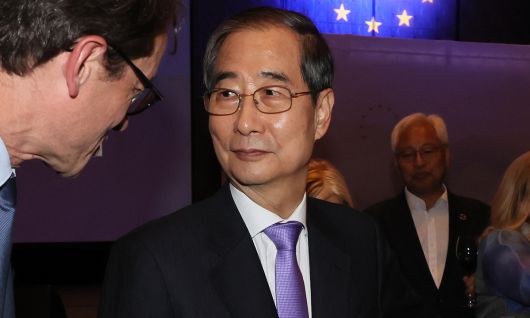 한덕수 대선 예비후보가 지난 9일 서울 한 호텔에서 열린 외교행사에서 참석자들과 대화하고 있다. 연합뉴스 |