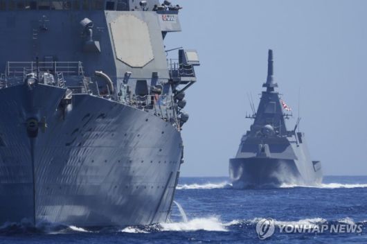 미군 함정과 공동 훈련을 벌이고 있는 일본 함정들. 연합뉴스 |
