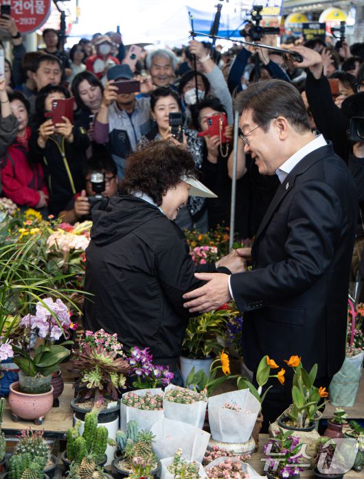 상인과 대화 나누는 이재명
