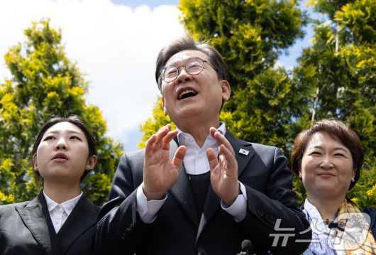 (함안=뉴스1) 이재명 기자 = 경청투어에 나선 이재명 더불어민주당 대통령 후보가 10일 오전 경남 함안군 가야읍 가야시장에서 연설을 하고 있다. 2025.5.10/뉴스12expulsion@news1.krCopyright ⓒ 뉴스1. All rights reserved. 무단 전재 및 재배포, AI학습 이용 금지.