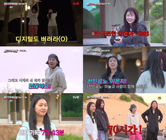 어제(9일) 방송된 tvN '뿅뿅 지구오락실3' 3회에서는 이은지, 미미, 이영지, 안유진이 디지털 디톡스도 막지 못하는 유쾌한 에너지와 휴대전화, 노트북 없이 시간을 맞히기 위해 샤머니즘부터 모래시계까지 동원하는 각양각색 활약으로 즐거움을 선사했다.