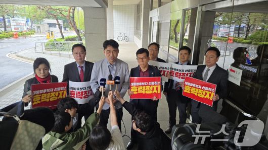 (서울=뉴스1) = 10일 서울 양천구 남부지방법원에서 김문수 캠프 관계자들이 국민의힘 21대 대통령 후보자 선출취소 효력정지 가처분 신청서를 제출하기 앞서 질의에 답하고 있다. (김문수 캠프 제공, 재판매 및 DB 금지) 2025.5.10/뉴스1photo@news1.krCopyright ⓒ 뉴스1. All rights reserved. 무단 전재 및 재배포, AI학습 이용 금지.