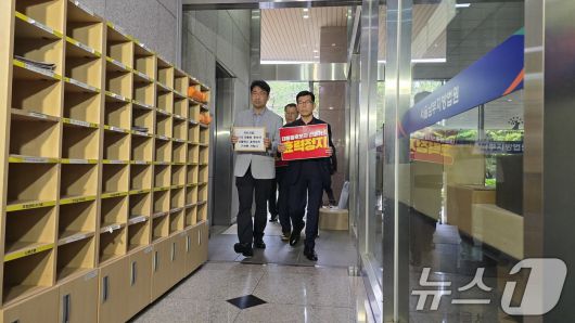 (서울=뉴스1) = 10일 서울 양천구 남부지방법원에서 김문수 캠프 관계자들이 국민의힘 21대 대통령 후보자 선출취소 효력정지 가처분 신청서를 제출하기 위해 이동하고 있다. (김문수 캠프 제공, 재판매 및 DB 금지) 2025.5.10/뉴스1