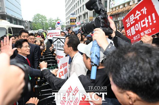 김 후보는 이날 "지난 밤 국민의힘 비상대책위원회는 국민과 당원의 선택을 받아 정당하게 선출된 저 김문수의 대통령 후보 자격을 불법적으로 박탈했다. 어젯밤 우리 당의 민주주의는 죽었다"며 "불법적이고 부당한 후보 교체에 대한 법적, 정치적 조치에 즉시 착수하겠다"고 말했다.