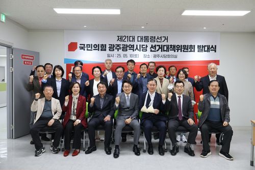 (광주=연합뉴스) 박철홍 기자 = 국민의힘 광주시당은 10일 광주시당 회의실에서 '제21대 대통령선거 국민의힘 광주광역시당 선거대책위원회' 발대식을 개최했다.